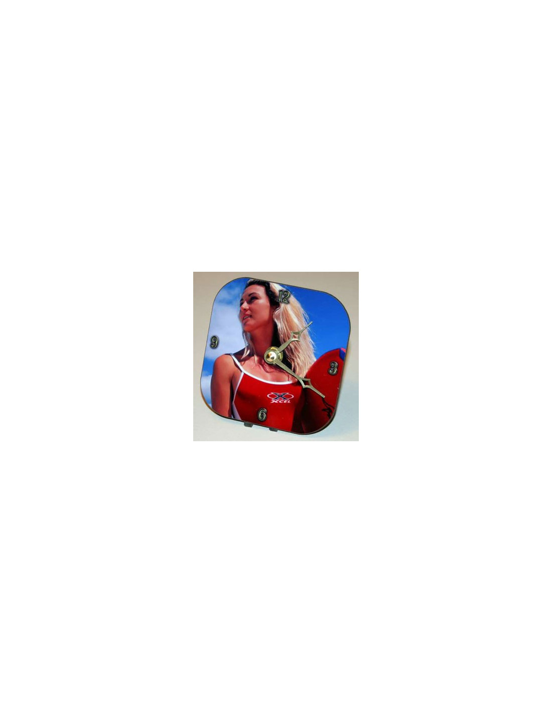 10x10 cm MDF puidust lauakell on kaetud spetsiaalse kihiga, millele kantakse sublimatsioontrükis peale Teie pilt või logo. Logode puhul, mis ei kata kogu tagust - siis ülejäänud taust jääb valge. Pildile lisatakse neli numbrit (3, 6, 9 ja 12), mille värvuse saate valida. Numbrite värvus on sama, mis teksti värvus. Komplekti kuuluvad spetsiaalne plastmassist jalg, QUARTZ kellamehhanism, tagaplaat (millele kantakse Teie pilt) ja osutid.